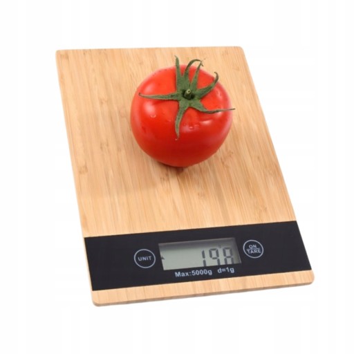 ⭐ ELEKTRONICZNA WAGA KUCHENNA PŁASKA BAMBUSOWA CIENKA PRECYZYJNA LCD 5KG ⭐
