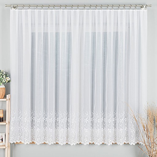 Haftowane wzory, które zdobią tę firanę, są wyrazem rzemiosła o najwyższej jakości. Delikatność i precyzja haftu sprawiają, że ta firana emanuje subtelnością i klasyką, idealnie komponując się z każdym stylem aranżacji wnętrz.