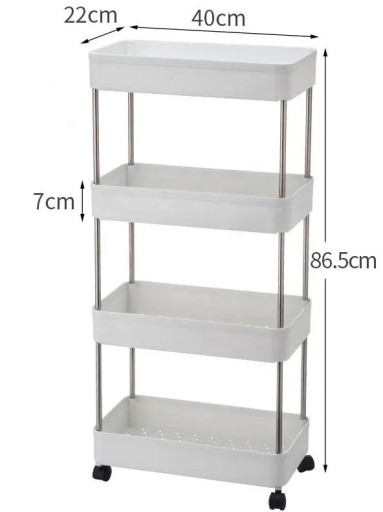 Zwiększ przestrzeń swojego domu dzięki mobilnej półce. Ta wszechstronna półka na kółkach to idealne rozwiązanie do łazienki, kuchni, czy każdego innego pomieszczenia, potrzebującego dodatkowej przestrzeni do przechowywania. Łatwość przemieszczania i elegancki design sprawiają, że jest to must-have w każdym nowoczesnym domu.