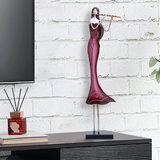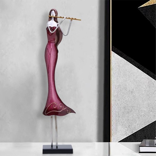 Rzeźba Girl Play Music: dziewczyna utrzymuje elegancką postawę stojącą, a powiewające długie włosy i spódnica dodają dziewczynie elegancji.