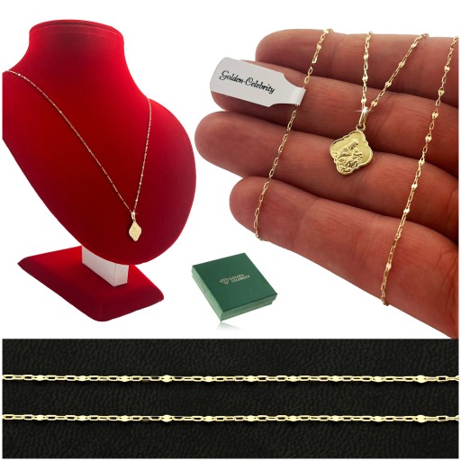 - Przedstawiamy państwu stylowy i elegancki łańcuszek o splocie ankier wraz z medalikiem Matki Boskiej Szkaplerzanej. Produkt został wykonany z najwyższej jakości pełnego złota próby 585.