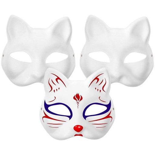 3 Pcs Cat Face Mask DIY Paintable Blank Mask