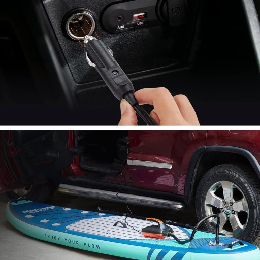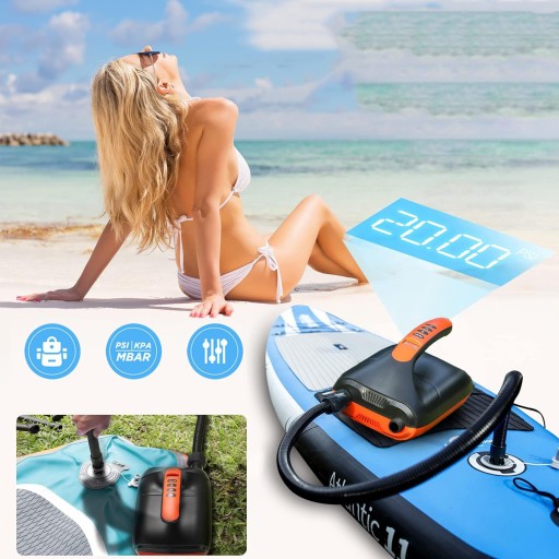 - Szybko i łatwo nadmuchuje i spuszcza powietrze z SUP (deski do wiosłowania na stojąco) i nadmuchiwanych basenów do uprawiania sportów wodnych.