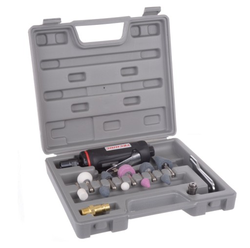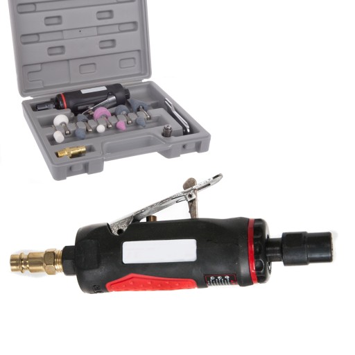Profesjonalna, przemysłowa szlifierka pneumatyczna z mocowaniem na trzpienie o średnicy 6mm i 3mm. Atutem tej szlifierki jest gumowa rękojeść, dobrze prosperujący spust z blokadą przeciwko nieostrożnemu uruchomieniu. Znajduje zastosowanie w warsztatach, serwisach i przydomowych garażach.