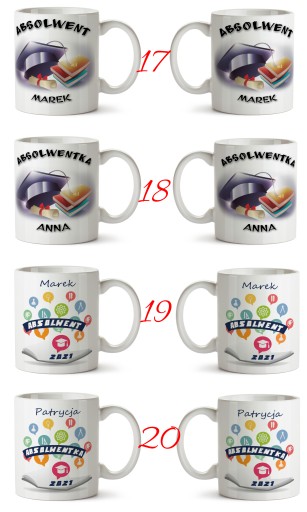 Kubek z imieniem to doskonały prezent na zakończenie roku szkolnego. Do wyboru widoczne poniżej projekty. Bardzo wysoka jakość nadruku i ładny połysk.