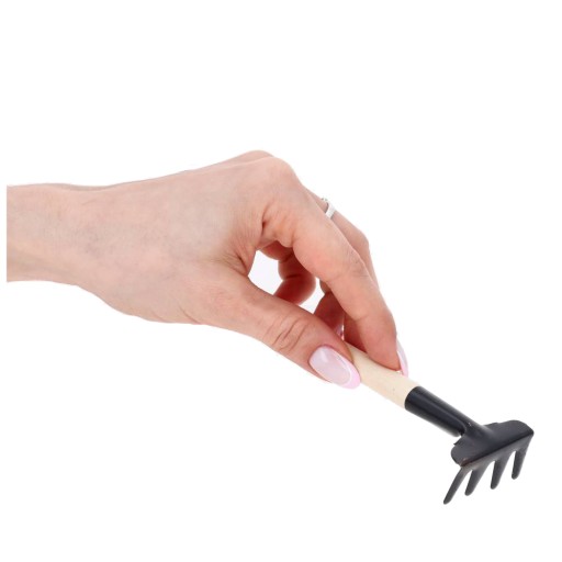 - Komplet zawiera: łopatę(20x4cm), szpadel(21x2,5cm), grabki(17x4cm).