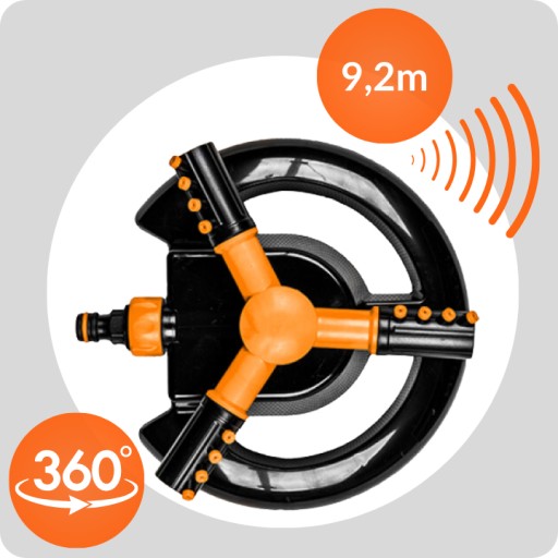 Zraszacz Ogrodowy Obrotowy 360° Regulowany 3 Ramienny Bradas 9,2m PVC