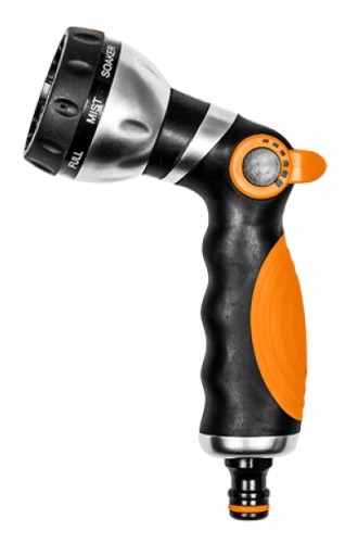 Pistolet został wykonany z myślą o ergonomii i wygodzie użytkowania. Wyprofilowany uchwyt gwarantuje pewny chwyt, a intuicyjne przełączanie między trybami zraszania umożliwia szybką adaptację do bieżących potrzeb.