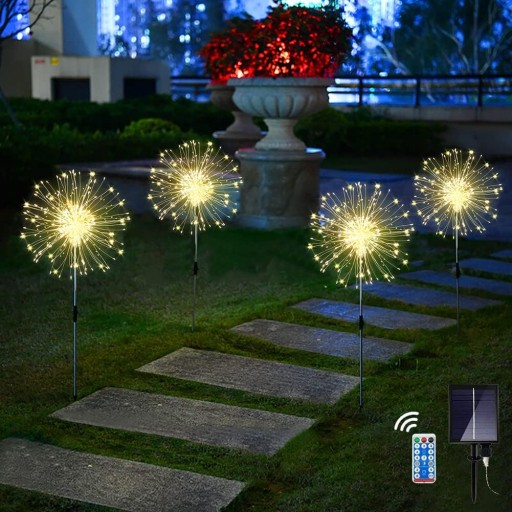 4 шт. СОЛНЕЧНЫЕ САДОВЫЕ ФОНАРИ DELELDS ФЕЙЕРВЕРКИ УКРАШЕНИЕ 480 LED + ПУЛЬТ ДИСТАНЦИОННОГО УПРАВЛЕНИЯ