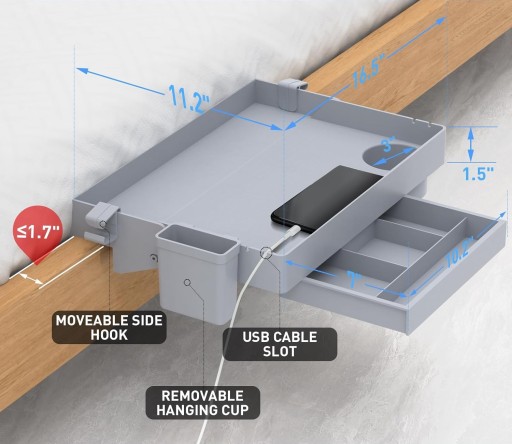 Zapomnij o schodzeniu z górnego łóżka lub po prostu o wstawaniu z łóżka tylko po to, aby złapać coś z podłogi lub z drugiego końca pokoju. Dzięki tej poręcznej półce przy łóżku iPad, telefon komórkowy, książki, budzik, napoje i inne przedmioty, które możesz zabrać ze sobą do łóżka, będą na wyciągnięcie ręki. Ta półka nocna może od razu pełnić funkcję stolika nocnego lub biurka, oszczędzając jednocześnie miejsce na podłodze i doskonale zastępuje szafki nocne w wąskich pokojach lub łóżka piętrowe