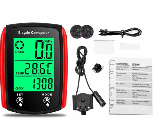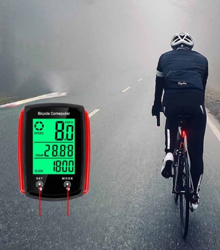 Niewielki licznik rowerowy kompleksowo zadba o jakość oraz dynamikę każdej Twojej przejażdżki. Dzięki wbudowanym trybom możesz zarówno sprawdzić swoją aktualna prędkość, przebyty dystans, czas okrążenia, średnią prędkość a nawet temperaturę otoczenia! Wszystko to na czytelnym podświetlanym wyświetlaczu LCD odpornym na deszcz!