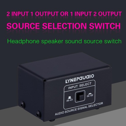 : 2 na 1 wyjście lub 1 na 2 wyjścia Wybór sygnału źródła dźwięku, przełącznik, komputer, głośnik, źródło dźwięku, przełącznik, interfejs , transmisja bezstratna konieczności projektowania zasilacza, bezpośredniej wtyczki i bezpośredniego użycia, utraty sygnałów wejściowych i wyjściowych, przełączanie transmisji, Głównie używany do wyboru wspólnego urządzenia wyjściowego do przełączania różnych wejściowych sygnałów stereo Jeśli istnieją dwa źródła sygnału stereo ( jak dźwięk z telewizora, odtwarzacz MP3, odtwarzacz , gra , telefon komórkowy, tablet, komputer, ), urządzenie musi być wysyłane do wzmacniacza lub aktywnego głośnika Dwa zestawy przełączników źródła stereo, interfejs słuchawkowy 3,5 mm dla wejścia i wyjścia, a przełącznik jest zaprojektowany z ręcznym przełącznikiem z precyzyjnymi 2 pozycjami