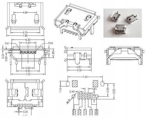 Gniazdo micro USB typu B do montażu SMD