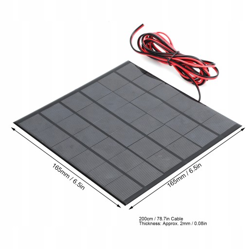 - Panel słoneczny: ok. 165 x 165 mm / 6,5 x 6,5 cala 200 cm / 78,7 cala kabla