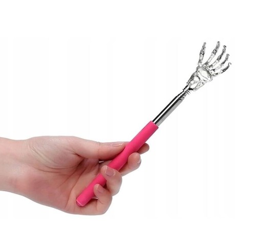 Solidna metalowa drapaczka w kształcie ręki z możliwością regulacji długości na wbudowanym teleskopie. Długość po rozłożeniu do 58cm.