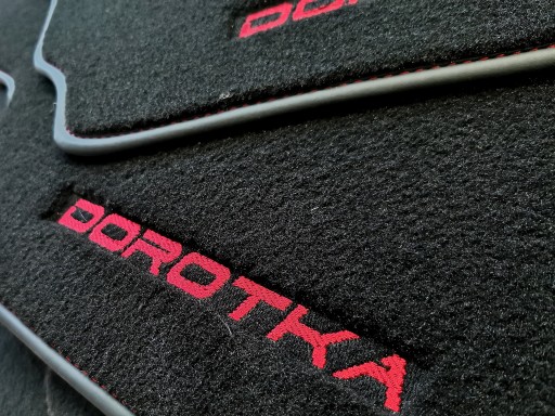 np. AUDI A4 B7 2006 napis czerwony na dywaniku kierowcy PATRYK na dywaniku pasażera MONIKA