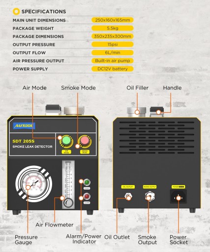 Dymny Tester szczelności układów Generator dymu AUTOOL SDT 205S