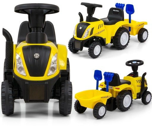 Wielofunkcyjność jeździka zapewni, że dziecko szybko się nim nie znudzi, a poprzez zabawę będzie rozwijać swoje zdolności manualne oraz sprawność motoryczną. Do traktorka dołączona jest przyczepka z grabkami i łopatką. Mocowanie przyczepki posiada zabezpieczenie przed samoczynnym wypięciem. Dodatkowym atutem pojazdu jest interaktywna kierownica z piszczałką, która w połączeniu z dwoma dodatkowymi przyciskami dźwiękowym i świetlnym (umieszczonymi na pulpicie) sprawi, że zabawa będzie jeszcze ciekawsza!
