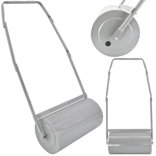 Walec ogrodowy marki AW, przydatny do wyrównywania ziemi, np. podczas zakładania trawnika – sianego lub z rolki, a także utwardzania gruntu (pod kostkę brukową itp).
