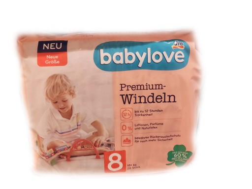 - Pieluszki Premium w rozmiarze 8 XXL (18 kg+) marki babylove idealnie dopasowują się do ciała dziecka i są ultracienkie, dzięki czemu zwiększają swobodę ruchów. Technologia 360° SkinPROTECT pozwala utrzymać właściwy poziom nawilżenia skóry. W pieluszkach zastosowano ponadto przyjazne dla skóry oddychające materiały oraz specjalne kanaliki, które równomierne rozprowadzają wilgoć, gwarantując nawet do 12 godzin suchości w dzień i w nocy. Pieluszki zostały przebadane dermatologicznie.