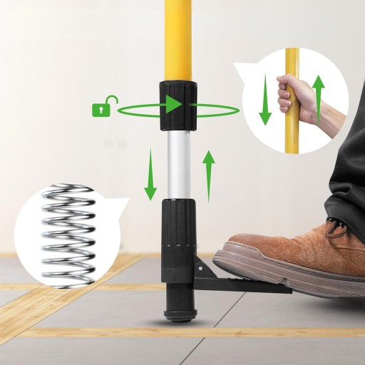 Podstawa tyczki ma miękkie wykończenie, które zmniejsza tarcie i ryzyko przesunięć, nie uszkadzając przy tym powierzchni. Podnóżek jest antypoślizgowy, co zwiększa bezpieczeństwo i komfort podczas pracy.