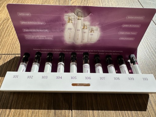 Który z zapachów z Kolekcji Francuskiej najlepiej do Ciebie pasuje? Aby się o tym przekonać, zamów swój Zestaw Perfumetek składający się z 26 próbek odpowiadających zapachom Linii Francuskiej oraz Kontynentalnej. Każdy z testerków został umieszczony w jednym z 4 opakowań charakterystycznych dla każdej z kolekcji luksusowych zapachów stworzonych na bazie komponentów z Grasse.