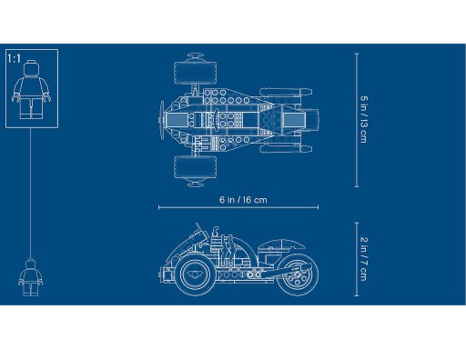 - Motocykl Batmana ma ok. 7 cm wysokości, 15 cm długości i 13 cm szerokości.