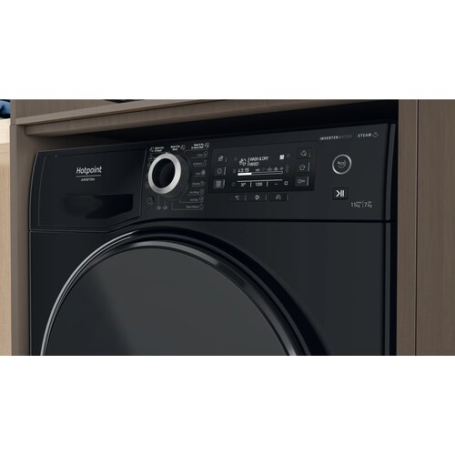 Hotpoint Washing Machine With Dryer NDD 11725 BDA EE Energy efficiency class E, Front loading, Washing capacity 11 kg, 1551 RPM, Depth 61 cm, Width 60 cm, Display, LCD, Drying system, Drying capacity 7 kg, Steam function, Black