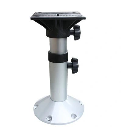 Regulowana ręcznie noga fotela z anodyzowanego aluminium z obrotową plastikowa podstawą.