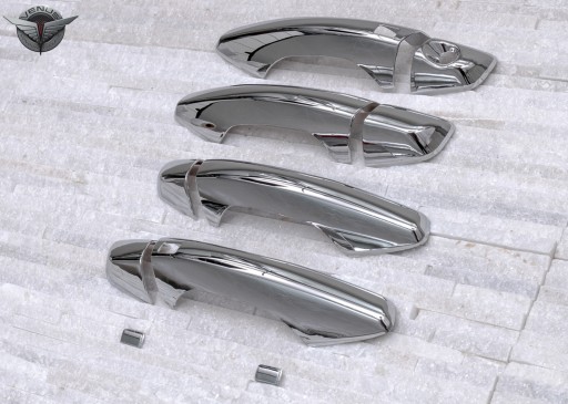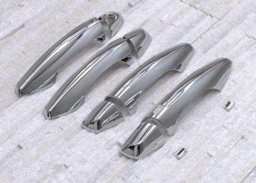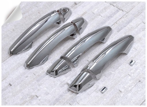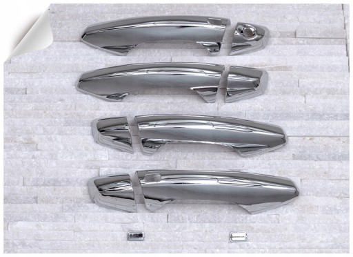 Chromowane nakładki na klamki zaprojektowane dla HYUNDAI SANTA FE III (DM) 2012-2018. Dekoracyjne, chromowane nakładki na klamki to dodatek, który uzupełnia stylizację samochodu nutą sportowej elegancji. Idealnie dopasowane do linii samochodu, odmieniają wizerunek klamek modelu SANTA FE, czyniąc z nich prawdziwą ozdobę samochodu. Produkt wykonany z wysokiej jakości chromowanego tworzywa ABS. Zestaw zawiera komplet czterech nakładek na klamki. Montowane są za pomocą taśmy dwustronnie klejącej Scotch 3M, zaaplikowanej na wewnętrznej stronie elementów. Nakłada się je na powierzchnię odtłuszczoną przy pomocy benzyny ekstrakcyjnej lub spirytusu, w temperaturach dodatnich od 18 st.C. Zalecamy montaż profesjonalny. Produkt fabrycznie nowy, oryginalnie zapakowany. Zachęcamy do zakupów!