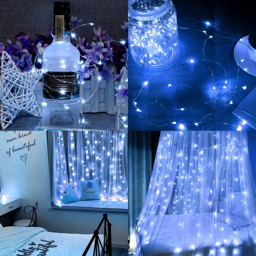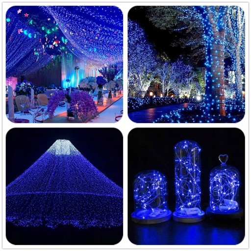Wodoodporna 10 M 100 Led Miedziany przewód Lampki Solarne Do dekoracji wewnętrznych i zewnętrznych (niebieski)