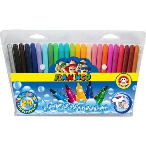 Flamastry 24 kolory, okrągłe, łatwo spieralne, w etui