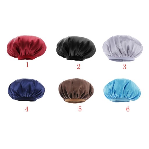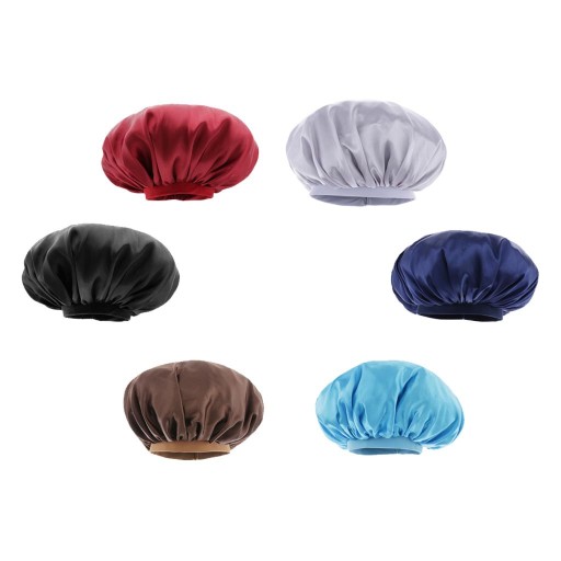 Атласная спальная шапочка с широкой эластичной повязкой на голову.