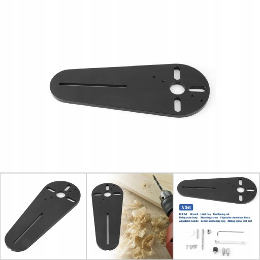Wiertarka, klucz, pierścień ograniczający, pręt pozycjonujący, stały korpus główny, śruby mocujące, regulowany blok aluminiowy, regulowany uchwyt, środkowy pierścień pozycjonujący, śruba do rowka środkowego frezowania