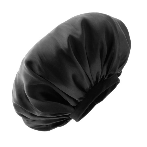 Regulowana czapka z satynowym jedwabiem, nocna czapka do spania, na długie kręcone, naturalne włosy, czarna