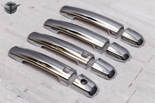 Elementy te wykonane zostały z wysokiej jakości chromowanego tworzywa ABS. Łatwy i bezpieczny montaż, można go wykonać we własnym zakresie. Nakładki montowane są za pomocą taśmy dwustronnie klejącej Scotch 3M, zaaplikowanej na wewnętrznej stronie. Należy je nakładać na odtłuszczoną powierzchnię za pomocą benzyny ekstrakcyjnej lub spirytusu, w dodatnich temperaturach od 18 st. C. W zestawie komplet czterech nakładek na klamki.