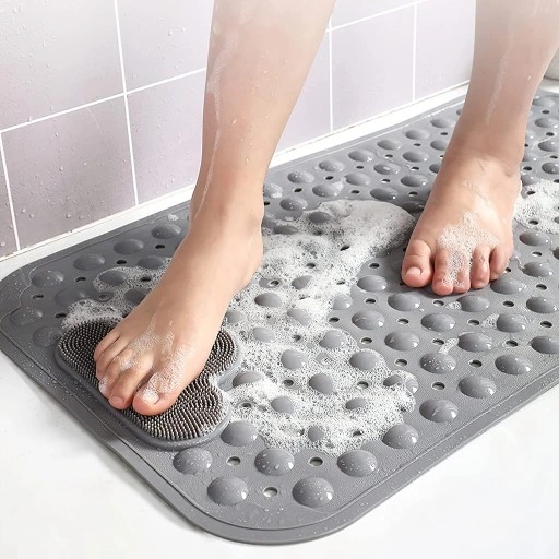 Jest to antypoślizgowa podkładka pod prysznic, która masuje stopy i oczyszcza martwe komórki skóry. Na teksturowanym włosiu, poruszając się w przód iw tył, może masować stopy, łagodzić zmęczenie i wspomagać krążenie krwi.
