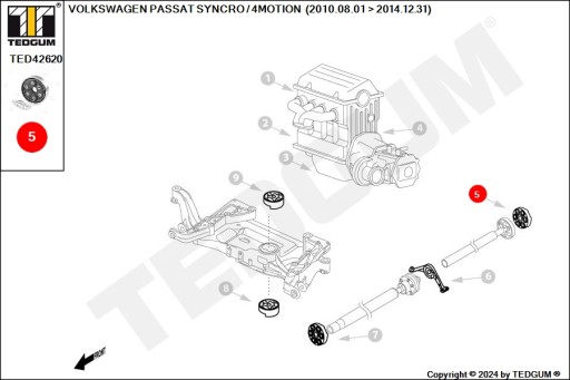 AUDI, SEAT, SKODA, VW ARTEON, CC SYNCRO / 4MOTION, GOLF SYNCRO / 4MOTION, PASSAT CC SYNCRO / 4MOTION, PASSAT SYNCRO / 4MOTION, SHARAN SYNCRO / 4MOTION, TIGUAN, T-ROC - PRZEGUB ELASTYCZNY WAŁU NAPĘDOWEGO TYLNI (ZE ŚRUBAMI)