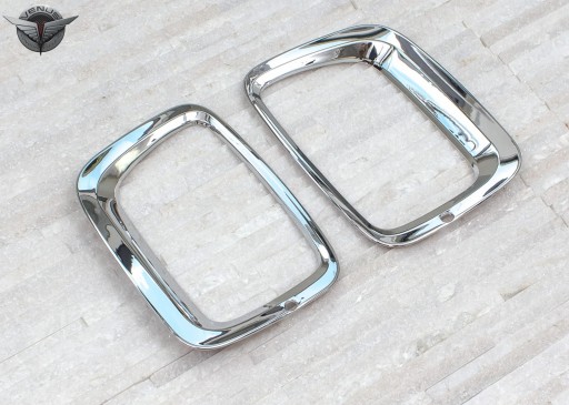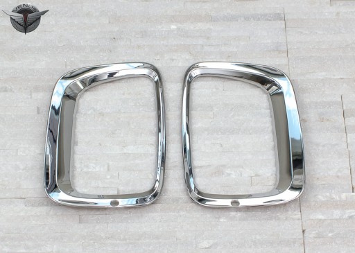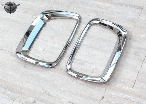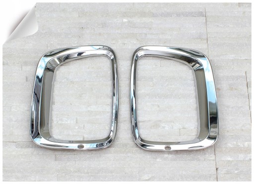 Zestaw zawiera komplet dwóch nakładek lamp. Produkt wykonany z wysokiej jakości chromowanego tworzywa ABS. Montowane są za pomocą taśmy dwustronnie klejącej Scotch 3M, zaaplikowanej na wewnętrznej stronie elementów. Zalecamy montaż profesjonalny.
