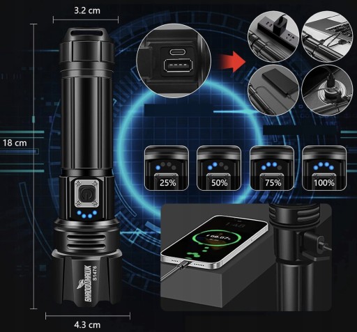 LATARKA LED TAKTYCZNA WOJSKOWA POLICYJNA 20000 LUMENÓW ShadowHawk XHP702