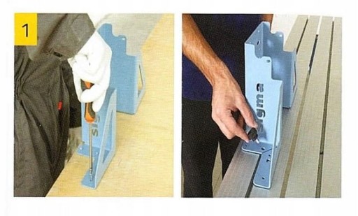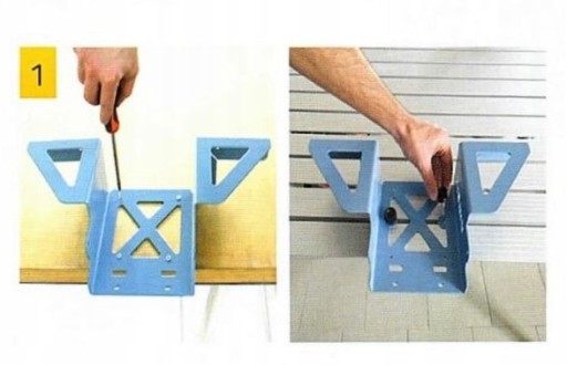1. Przystawkę położoną na blacie przykręcamy 4 śrubami w każdym rogu. Ewentualnie, można przykręcić gałki z zestawu do zaokrąglonej części ramy jeśli blat posiada przerwy.