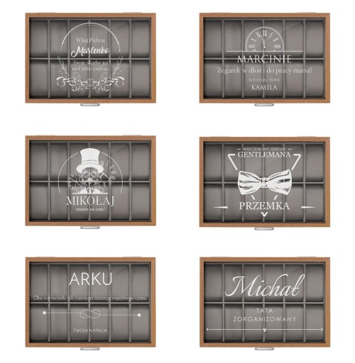 ✔️ Personalizowany grawer: Możliwość indywidualnego graweru dodaje naszej szkatułce na zegarki osobisty charakter, czyniąc ją idealnym prezentem dla mamy, taty, córki czy przyjaciela.