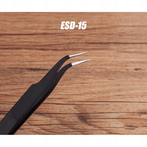 6️⃣ Pęseta 120mm zagięta 45°, szeroka ESD-15