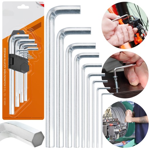 KLUCZE IMBUSOWE 9 el. zestaw profesjonalne klucz imbusy stal 1,5 – 10 mm