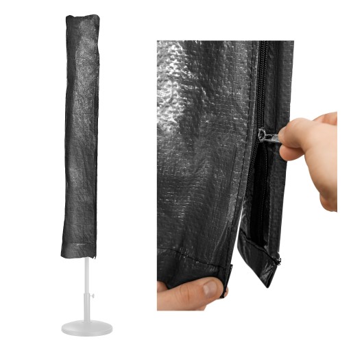 Pasuje do różnego rodzaju parasoli. Materiał wykonania PE jest bardzo trwały, a przy tym zapewnia parasolowi przewiew powietrza. Pokrowiec jest łatwo utrzymać w czystości.