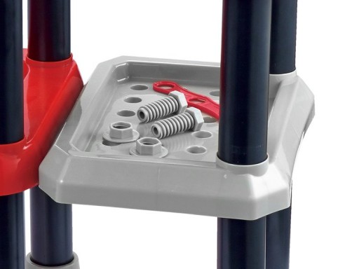 Idealny warsztat dla małego mechanika, wspaniała zabawa dla chłopca, który interesuje się majsterkowaniem. Zabawka pozwala chłopcu poczuć się jak w prawdziwym warsztacie. Zestaw zawiera 121 elementów