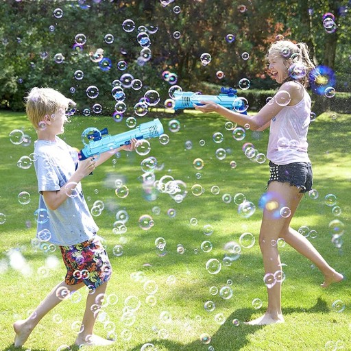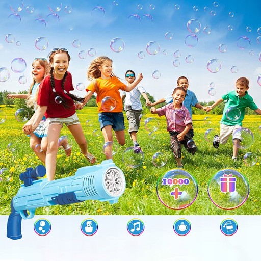 - Mimo że pistolet do baniek można obracać o 360 stopni, wystrzeliwuj bańki w różnych kierunkach, a następnie otocz się bąbelkami w ciągu chwili i nie musisz się martwić, że Twoje dzieci będą się kleić.