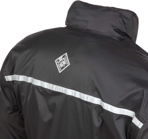 Przednie zapięcie na zamek błyskawiczny i obszycie dla większej nieprzemakalności (nawet w okolicach szyi).