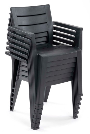 Krzesło JULIE, o charakterystycznym kształcie z lekko zaokrąglonym oparciem i opływowymi podłokietnikami, to nowoczesny design, ale także komfort użytkowania. Przemyślana konstrukcja pozwala na sztaplowanie krzeseł (składane jedno w drugie), co pozwala zaoszczędzić sporo miejsca na przechowywanie produktów. JULIE charakteryzuje się wysoką trwałością na uszkodzenia, odpornością na działanie warunków atmosferycznych i promieni UV. Czyszczenie miękką ściereczką z dodatkiem wody i detergentu.