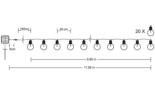 - 20 punktów świetlnych ze średnicą kuli 6 cm w odległości co 50 cm